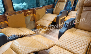 Premium Force Urbania Van Hire Delhi, Noida Gurgaon Ghaziabad – Recliner Massager Motorized Ventilation Seats Ac Heater Fridge Heater Dining Table :